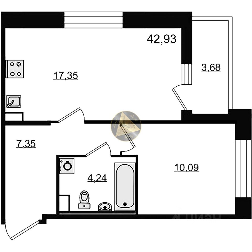Квартира находится на 3/12 этаже. Общая площадь квартиры 42.93 м2.