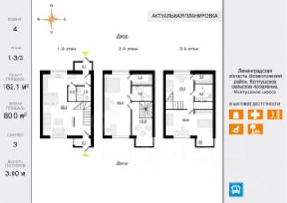 - квартира 162,4 кв. м располагается на трёх этажах с индивидуальной планировкой
