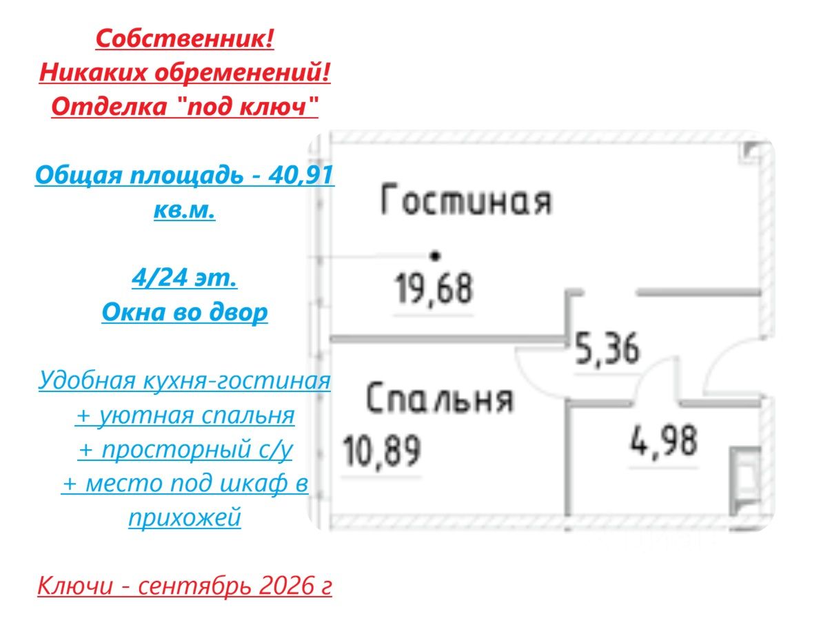 40,91 м² | 4/24 этаж | ЖК Про.Молодость, пр. Большевиков, Невский район.