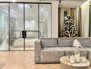 — двери скрытого монтажа и раздвижная стеклянная конструкция в спальне;
