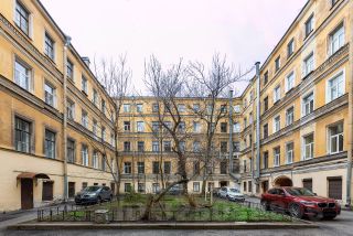 Вход со двора. Во дворе, в центре Санкт-Петербурга закреплено 2 места для машины. Тихий, зеленый, закрытый двор.