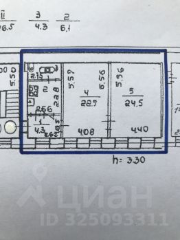 - общая площадь 61,9квм; жилая 47,2 квм комнаты смежные (24,5+22,7) квм; квадратная кухня 6,1квм;