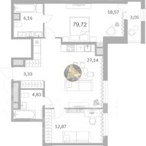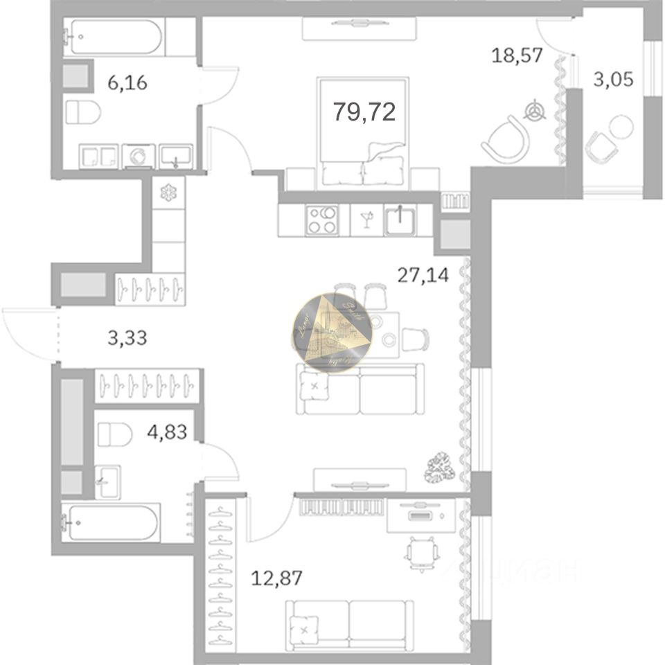 Светлая спальня 18.57 м2 с отдельным санузлом 6.16 м2.