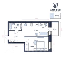 Прекрасная квартира 2-Евро, общей площадью 38,4 кв м (с учетом кабинет-балкона 43 кв м)