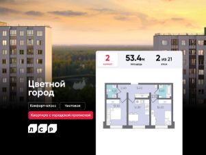 Продается 2-комнатная квартира в ЖК "Цветной город" на 2 этаже. Общая площадь составляет 53.40 кв. м. Квартира с чистовой отделкой Срок сдачи дома: 3 квартал 2026. Жилой комплекс "Цветной город" располагается по адресу Санкт-Петербург, Красногвардейский.