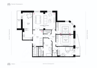 Квартира в классическом стиле для большой семьи: три спальни, просторная гостиная, большая кухня с лоджией.