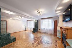 Отдельная просторная гостиная с двумя окнами и камином. Пол художественный паркет из ценных пород дерева.