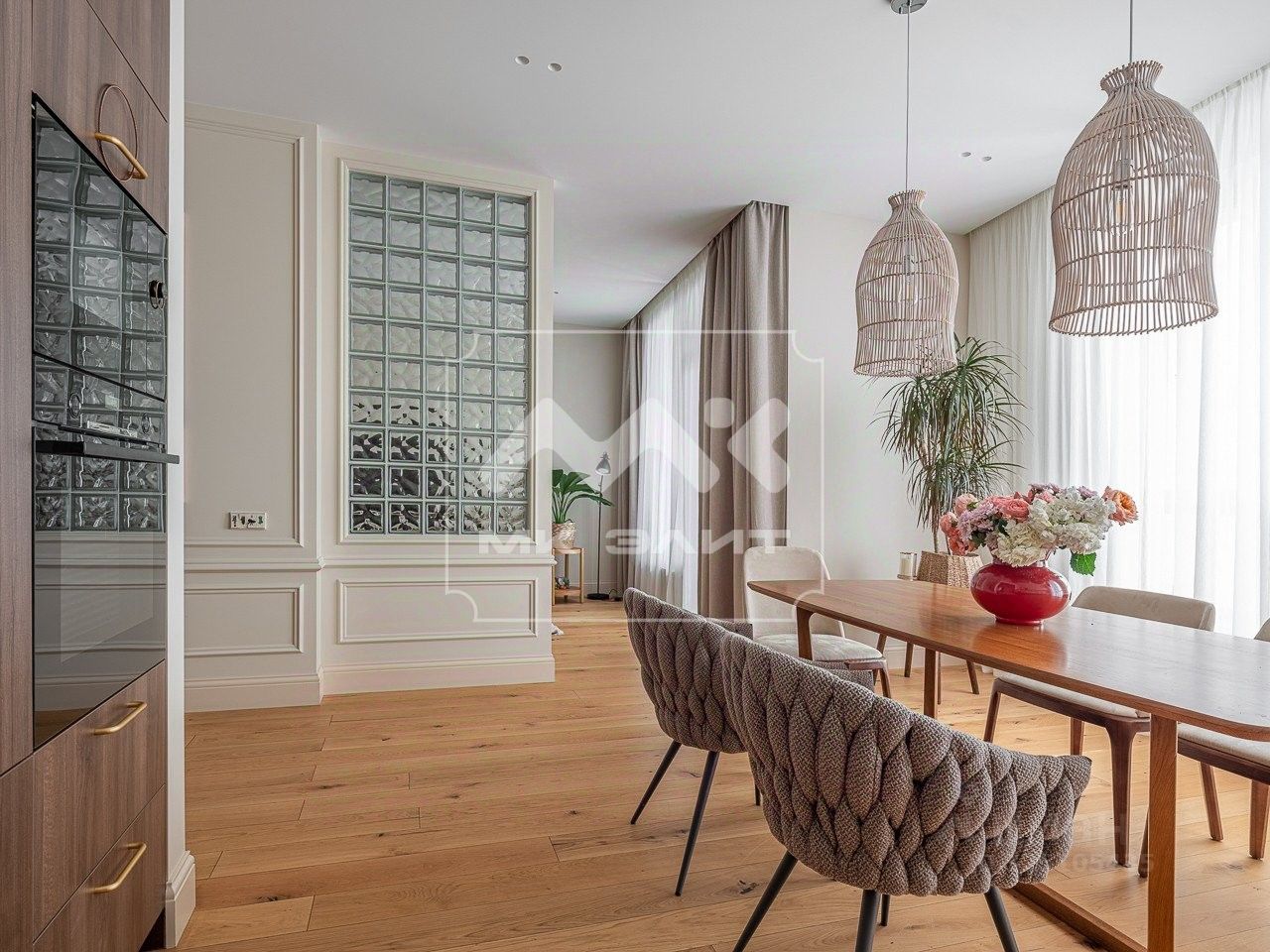 - Стильная мебель: Интерьер дополнен дизайнерской мебелью, что подчеркивает высокий уровень жилья.