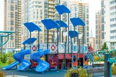 Дом рассчитан на комфортное и безопасное проживание: аккуратные парадные, три лифта (пассажирский и два грузовых), видеонаблюдение по периметру, консьерж. Во дворе — современные детские площадки для разных возрастов, спортивные зоны, места для отдыха, зелёные насаждения.