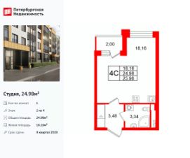 Продается просторная студия от застройщика в жилом комплексе "Univer City" в на юге Санкт-Петербурга.