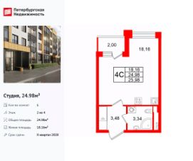 Продается просторная студия от застройщика в жилом комплексе "Univer City" в на юге Санкт-Петербурга.