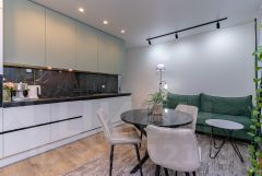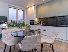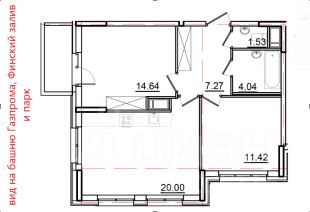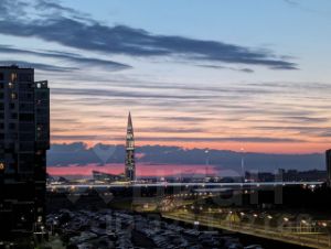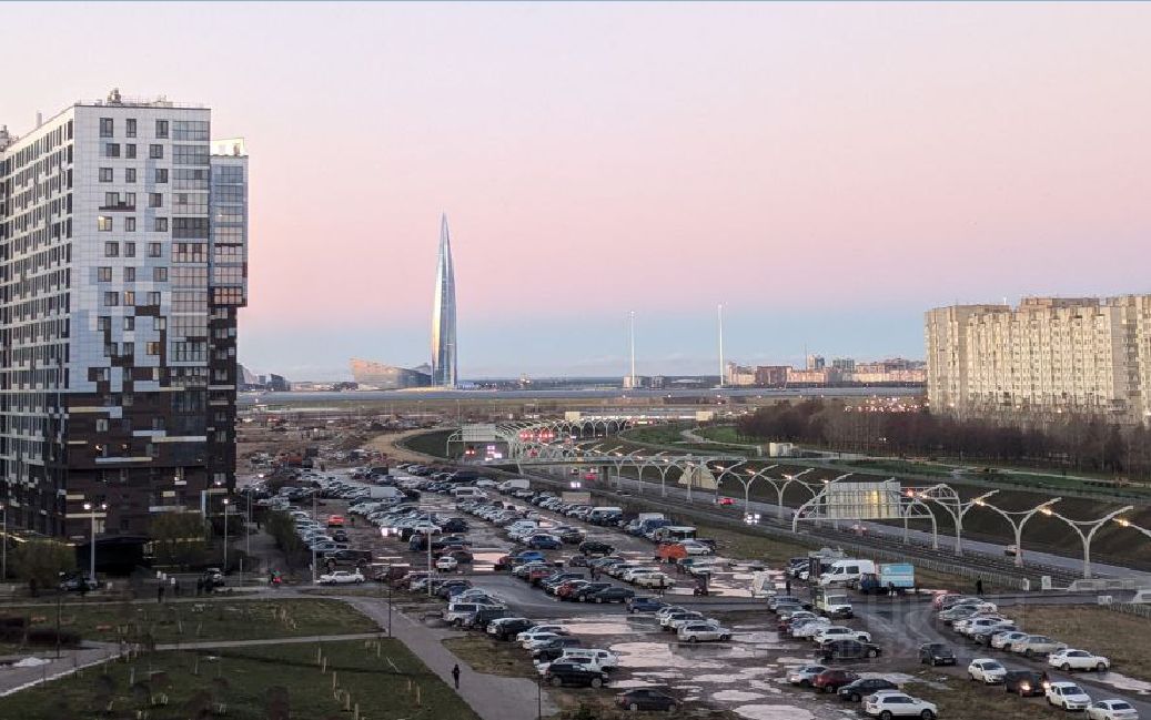 - Три окна в кухне-гостиной 20 метров, с панорамными видами на башню Газпрома и Финский залив
