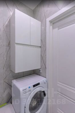 - Зеркало с подсветкой и подогревом от запотевания, часами. Тумба с раковиной из искусственного камня (не обычный фаянс). В шкафчике, что висит над стиральной машиной нижнее отделение является корзиной для белья, не нужно ставить какие-то дополнительные корзины.