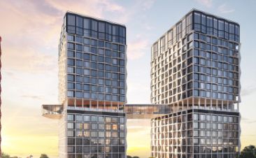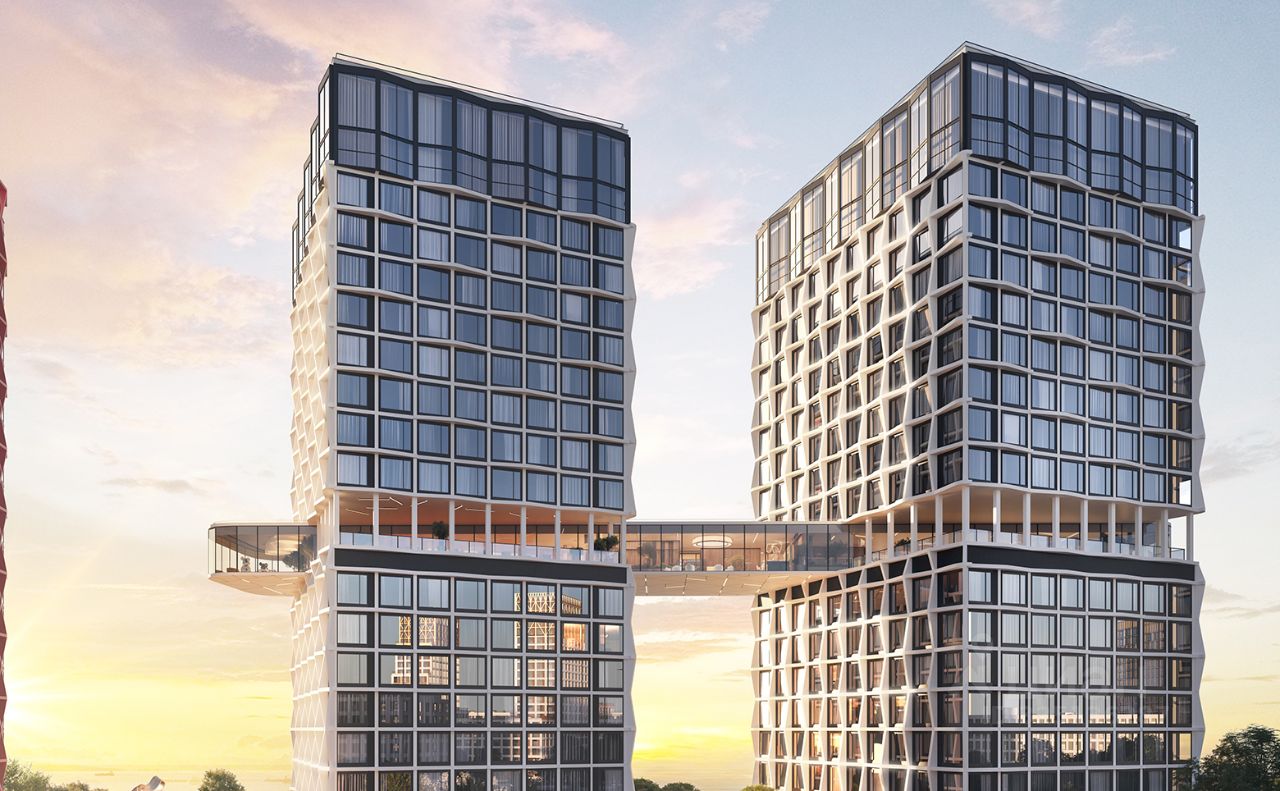 зонами, детскими площадками и местами для отдыха, на кровле стилобата планируются зеленые сады с интерактивными площадками, зоной для занятий спортом и амфитеатр. Башни TITAN и PLATINA на уровне 9 этажа объединяет Небесный мост — 1 000 кв.м.