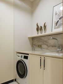 Организованная рутина дня - сезонный гардероб в прихожей и базовый в спальне, хозяйственная комната и продуманный до нюансов кухонный рабочий модуль, освобождают время для занятий полезных телу духу и душе.