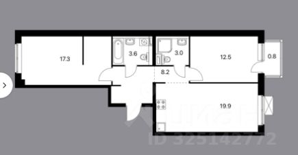 Площадь комнат 17.3 и 12.5 м, кухни-гостиной 20 м. Два просторных совмещенных санузла (3.6 и 3 кв. м.), в одном установлена полноразмерная ванна, во втором душевая кабина.