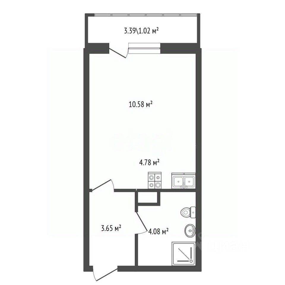 • Oбщaя площадь квaртиры: 23.1 кв.м. с балконом 24.2 кв. м