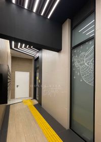 Кухню-гостиную 19кв.м. правильной формы с выходом на лоджию, ванную комнату, гардеробную, спальню с выходом на вторую лоджию. Пространство холла 12,4 кв.м. возможно объединить со спальней и гардеробной или создать отдельно от спальни гардеробную еще большего размера.
