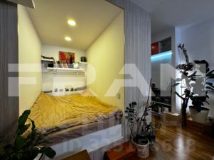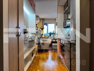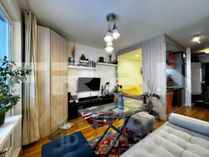 В квартире выполнен отличный ремонт, где каждый угол продуман с умом. Квартира не смотря на габариты, очень вместительная! Паркетная инженерная доска на полу, стены под покраску. Под кровать отведена отдельная зона с пьедесталом. Установлена качественная сантехника