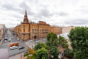 Из окон открывается умиротворяющий вид на историческую застройку.Вечерняя художественная подсветка Дома Офицеров создает постоянно меняющийся живописный фон, превращая вашу гостиную в приватную смотровую площадку с уникальной романтической атмосферой.