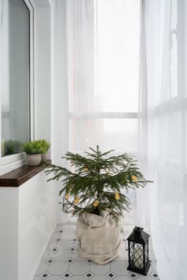 В квартире широкий балкон с панорамным полноформатным остеклением, освещением и уютной зоной отдыха