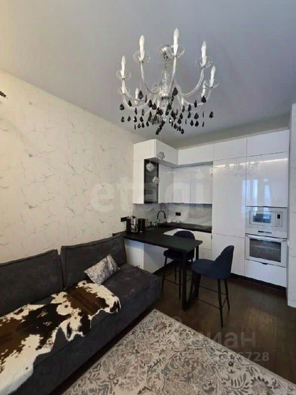Планировка продумана для комфортной жизни: реализована коллекторная разводка водопровода, исключающая перепады температуры воды, а электрическая разводка включает розетки для умной техники, телевизоров в комнате и на кухне, а также вывод света и электричества на лоджию. Кухонный гарнитур выполнен на заказ с эргономичным расположением.
