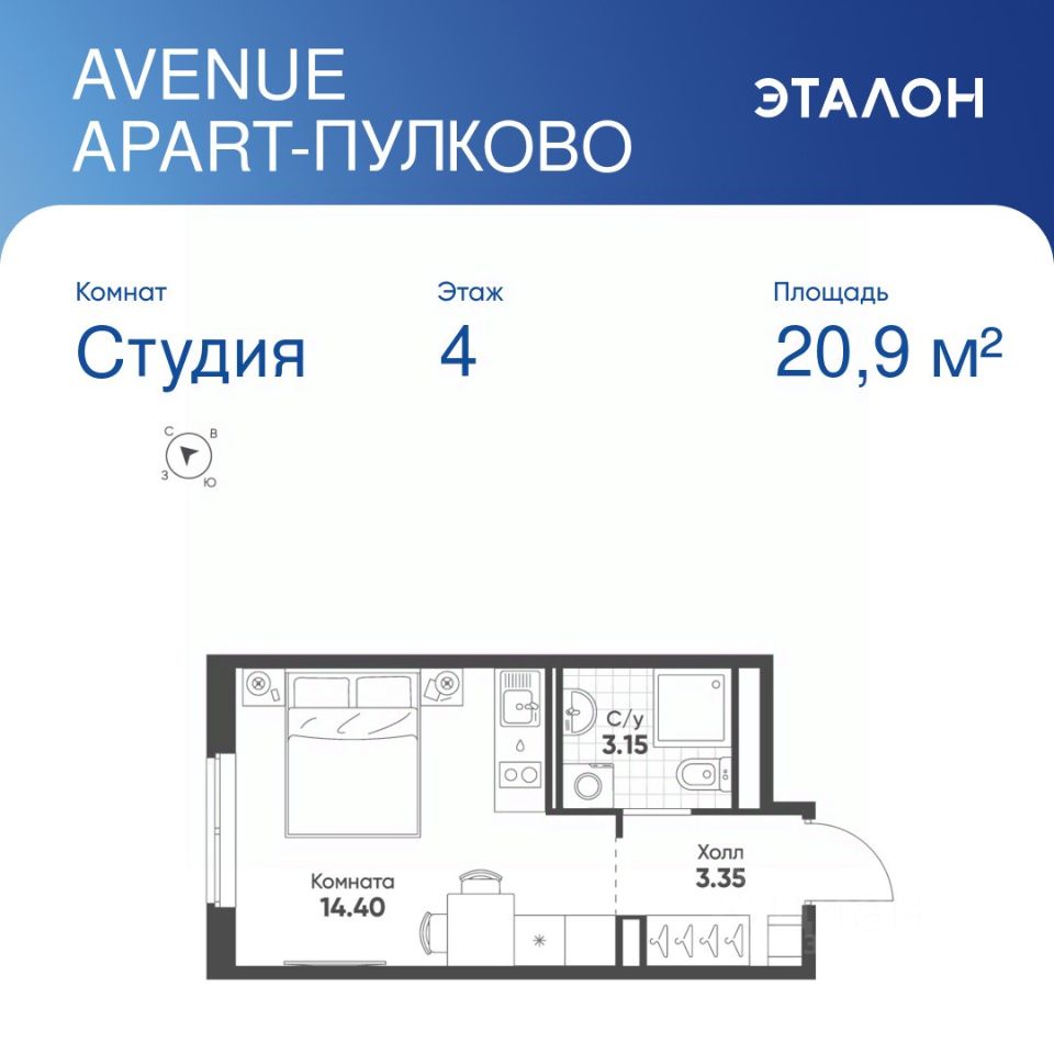 Продается апартаменты-студия с чистовой отделкой в ЖК AVENUE-APART Пулково.