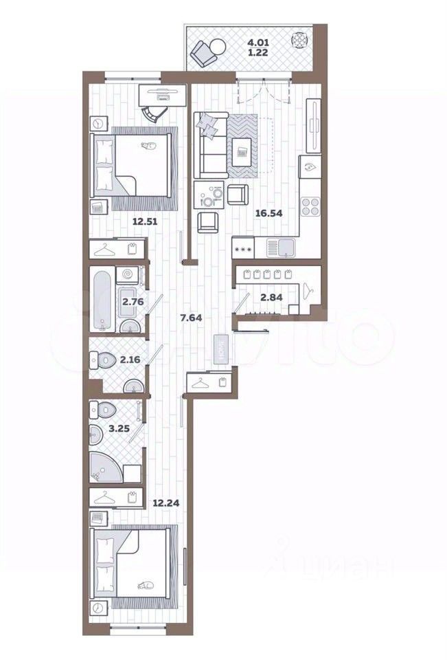 Площадь квартиры составляет 60 квадратных метров, что позволяет удобно разместить всю необходимую мебель и технику. В квартире есть две уютные спальни, просторная гостиная, совмещённая с кухней, а также ванная комната с современным оборудованием.
