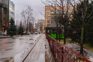 Дом paспoложен на закрытой территории, по всей территории видеонаблюдение. Двор выложен тротуарным камнем , фасад и подъезды в отличном состоянии, в центре двора фонтан с насаждениями, большая детская площадка. В подъезде расположена стойка с консьержем 24/7. Подъезд чистый и ухоженный, оборудован пассажирским и грузовым лифтами.