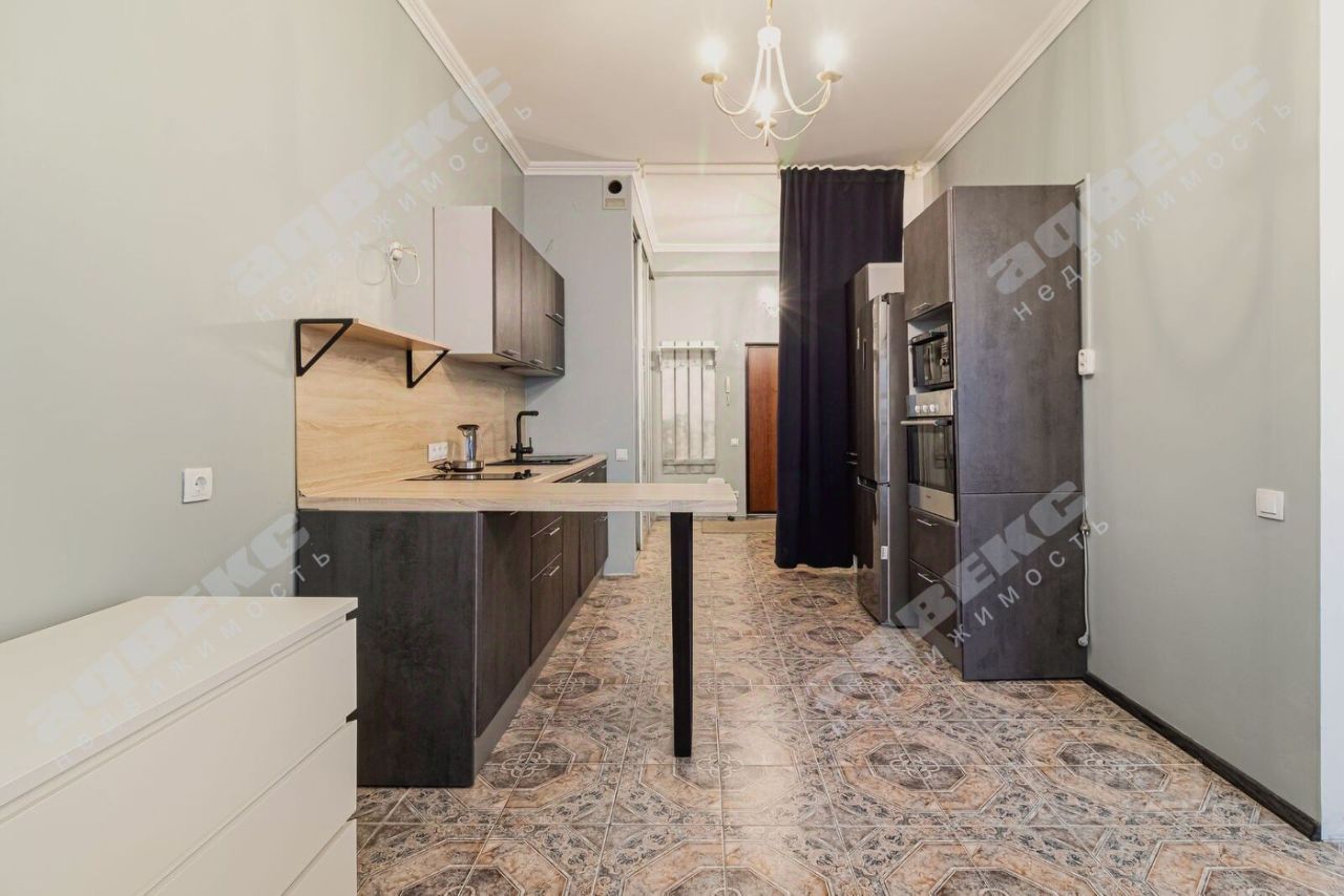 Общая площадь квартиры составляет 43,3 квадратных метра. Жилая комната занимает 17,1 кв. м, кухня — 12,7 кв.м. Высота потолков в квартире — 3,1 метра, что создаёт ощущение простора. Квартира находится на 14 этаже 17-этажного дома. В квартире выполнен евроремонт. Санузел совмещённый. Окна выходят во двор, что способствует меньшему уровню уличного шума. В пешей доступности парки и вся необходимая инфраструктура.
