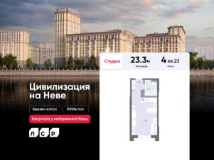 Продаётся студия в ЖК "Цивилизация на Неве" на 4 этаже. Общая площадь составляет 23.30 кв. м. Квартира с white box отделкой. Жилой комплекс "Цивилизация на Неве" располагается по адресу Санкт-Петербург, Невский.