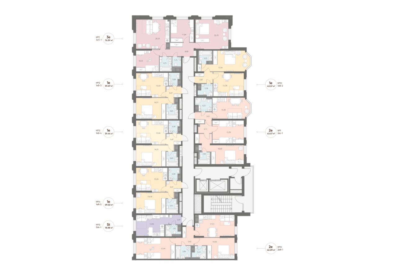 • Инфраструктура шаговой доступности на первых этажах корпусов.
