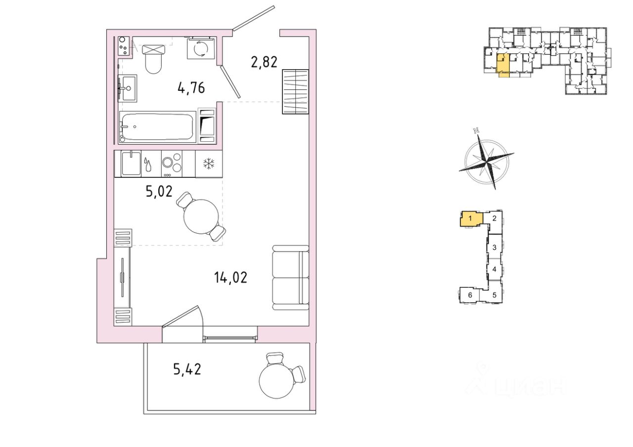 Продается студия, 28,25 м²