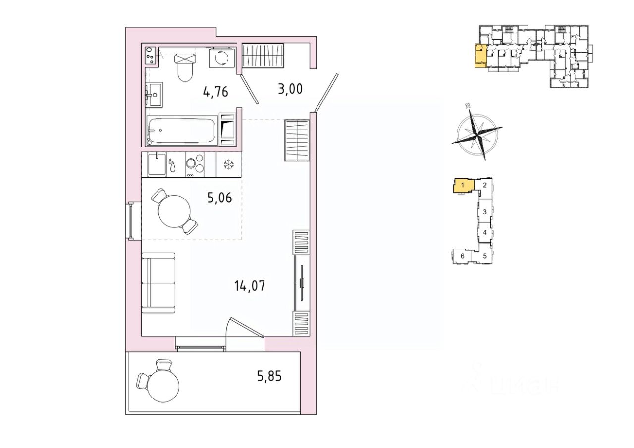 Продается квартира-студия 47 в ЖК IQ Гатчина