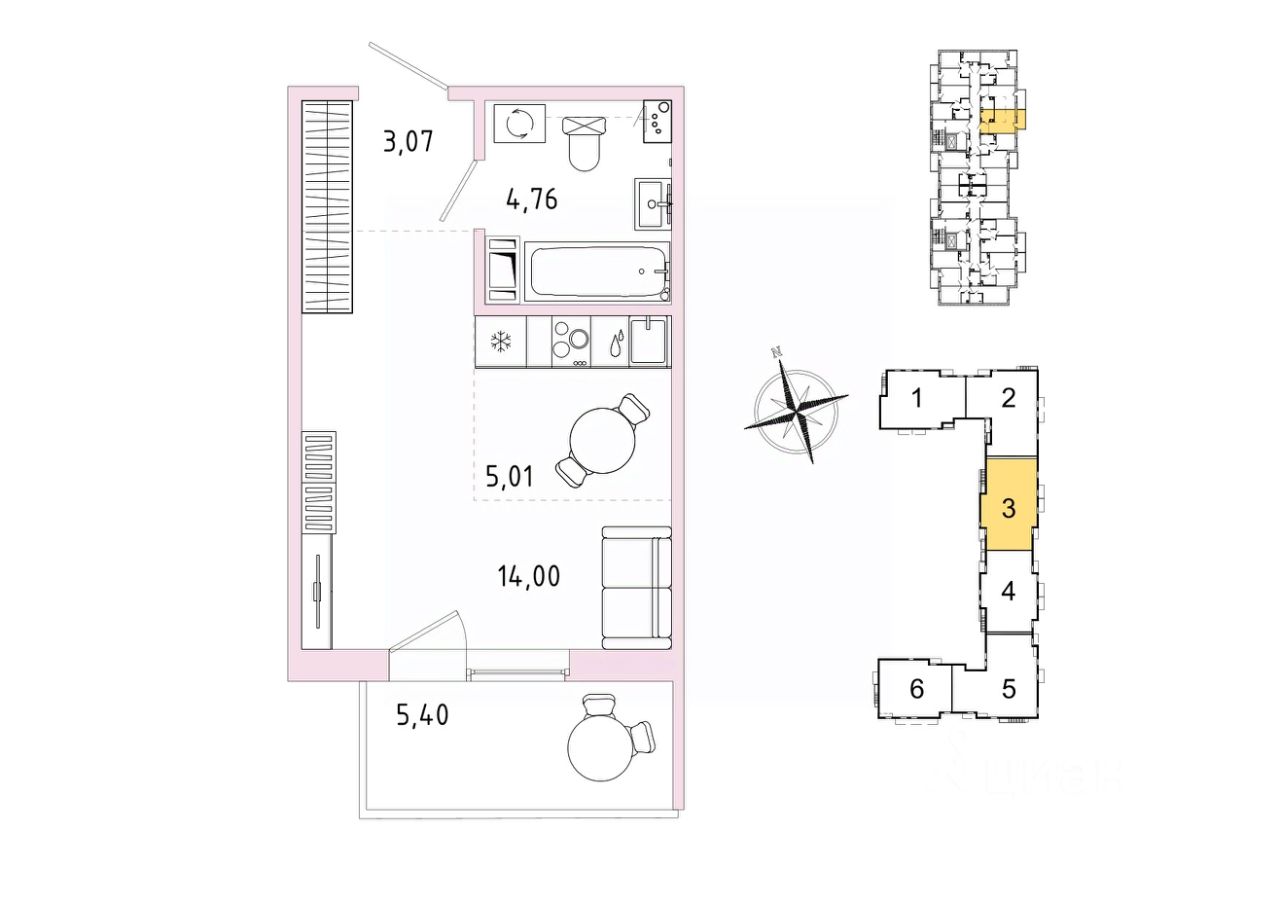 Продается студия, 28,46 м²