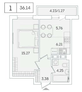 В продаже от застройщика 1 комнатная квартира 35 кв. м с черновой отделкой и практичной планировкой для удобной организации пространства. Корпус сдан, идет выдача ключей.