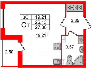Продается квартира Студия 25,7 м² с отделкой Nord line White, мебелью и техникой в малоэтажном ЖК Парадный ансамбль.
