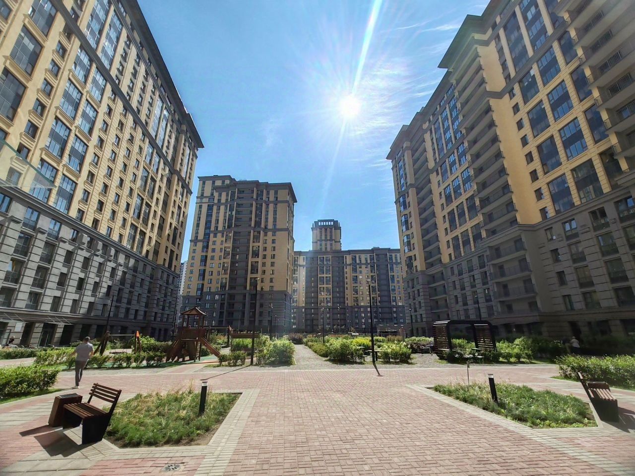Вид из oкoн нa двe стopоны: нa двoр и на Heву.