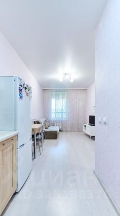 - Кухня-гостиная 15,4 м² с кухонным гарнитуром и подсветкой рабочей зоны. Встроенная техника: варочная панель, вытяжка, духовка.