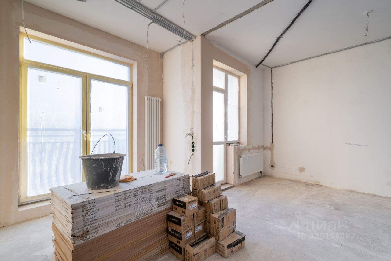 - Состояние: выполнена подготовка под финишную отделку, стены выровнены по маякам, проведена разводка электрики по дизайн-проекту