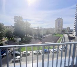 Евродвушка с открытым балконом. Находится на 5 этаже, окна выходят на самую светлую, юго-восточную сторону, на территорию школы и небольшой проезд.