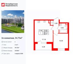 Удобная, классическая, функциональная европланировка, большая кухня-гостиная 17.18 м², вместительная прихожая 3.88 м². Общая площадь квартиры - 34.73 м², жилая 10.05 м², высота потолка 2.77 м.