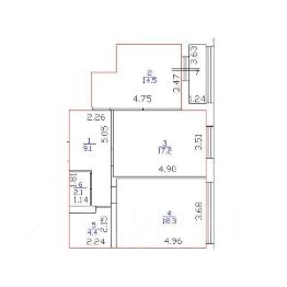 Квартира состоит из двух комнат правильной формы, площадью 17,2 кв.м. и 18,3кв.м. ,кухня 14,5 кв.м с выходом на лоджию, просторная прихожая 9,1кв.м., имеется гардеробная.
