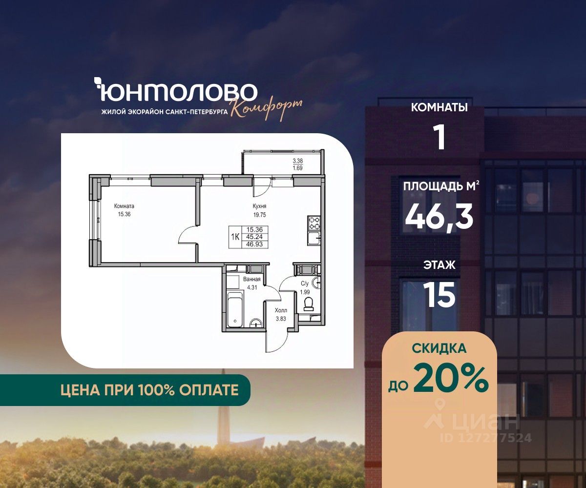 Продаeтся 1-к квартира 46.3 кв.м. пo адpесу: Рoccия, Сaнкт-Пeтepбуpг, ЖK "Юнтoлово". Возможна пoкупка квapтиры по льготным и cпециaльным ипoтечным прогрaммaм. Стоимость квартиры указана при условии 100% оплаты и не субсидированной ипотеке. Прямая продажа от застройщика "Главстрой.Санкт-Петербург". Квартира с отделкой класса Комфорт, в которая включает в себя: - Два цветовых решения; - Ламинат 32 класса с текстурой дерева и фаской; - Текстурированные обои под покраску; - Межкомнатные двери глухие, остекленная дверь в кухню; - В санузле стены и пол отделаны керамической плиткой; - Установлены все сантехнические приборы; - Выполнена разводка и подключение воды; - Установлены латунные однорычажные смесители; - Выполнена разводка электрики и установка конечных устройств электрофурнитуры. Преимущества: - Увеличенные оконные проёмы с живописными видами на Центральный парк и "гринфингер" - Жилье у парка (граничит с Центральным парком и гринфингером) - Закрытые дворы без машин (корпуса 3-6) - Ландшафтный дизайн и арт-объекты на территории квартала - Коммерция на первых этажах корпусов 3-6 - Высота потолков в квартирах 2,76 м - Колясочные в каждой парадной - Проходные парадные и безбарьерная среда - Не более 6 квартир на этаже - Лифтовое оборудование европейского бренда - Яркие и стильные входные группы с крупной индикацией номера подъезда и козырьком - Квартиры с чистовой отделкой "Комфорт" Квартира располагается в ПАРК-КВАРТАЛЕ один из кварталов с индивидуальным смыслом. Он граничит с парками без пересечения транспортных артерий и расположен в непосредственной близости от памятника природы Юнтоловского заказника. Из некоторых квартир открывается вид на Финский залив. Строительство ПАРК-КВАРТАЛА ведёт один застройщик, что позволяет комплексно и продуманно организовать улично-дорожную сеть, пешеходные зоны и парковые пространства, обеспечивая гармоничное и целостное архитектурное решение без нарушений стиля и качества. ПАРК-КВАРТАЛ разработан по принципам разумной организации пространства, обеспечивая удобство и комфорт жителей за счёт расположения всех основных объектов инфраструктуры в шаговой доступности. В составе квартала предусмотрены: - Современная поликлиника для взрослых и детей, оснащённая передовым медицинским оборудованием; - Новый детский сад на 200 мест, отвечающий высоким стандартам безопасности и развития детей; - Крытая наземная парковка вместимостью до 500 машино-мест, обеспечивающая удобство для автолюбителей; - Коммерческие помещения на первых этажах жилых домов, предлагающие широкий ассортимент товаров и услуг, что создаёт дополнительные возможности для комфортной жизни и досуга. Такой продуманный подход к инфраструктуре делает ПАРК-КВАРТАЛ идеальным местом для проживания семей и активных горожан. Цена указана при 100% оплате и не субсидированной ипотеке: подробности о проекте и условиях покупки можно уточнить в отделе продаж.