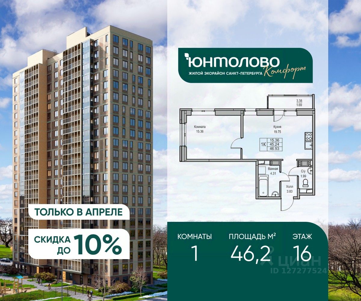 Продаeтся 1-к квартира 46.2 кв.м. экорайона "Юнтолово" (Приморский р-н) напрямую от застройщика "Главстрой Санкт-Петербург". Доступны льготная ипотека, рассрочка, трейд-ин и спецпредложения.