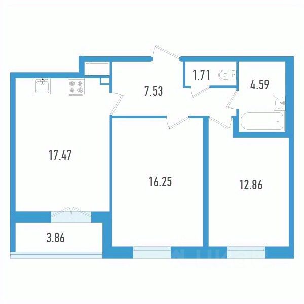 Продаётся 2-комнатная квартира в сданном доме (Типанова, 22 (Дом 1)), срок сдачи: IV-кв. 2024, общей площадью 62.34 кв.м., на 3 этаже.