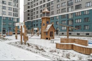 Во дворе нашего дома расположен новый детский сад, плюс недалеко 2 школы, а так же достраивается поликлиника за домом.