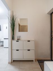 Квартира расположена на 4 этаже 9-этажного дома. На этаже всего шесть квартир, в квартире тихо, хорошая шумоизоляция. Дополнительный плюс — общая терраса - лаунж зона.