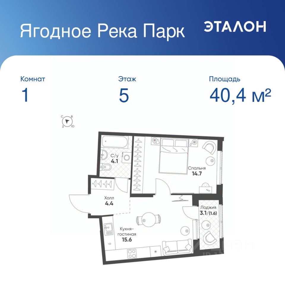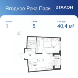 Продается 1-к квартира без отделки в ЖК "Ягодное Река Парк".