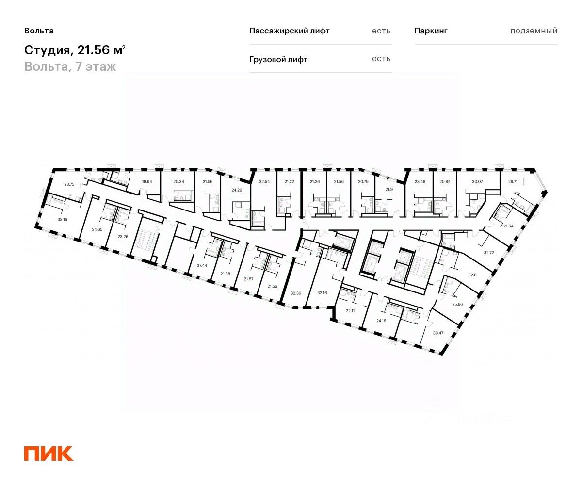 Продаются апартаменты-студия площадью 21,56 кв.м на 7 этаже 15 этажного дома (Вольта, Секция 1) проекта ПИК Вольта.